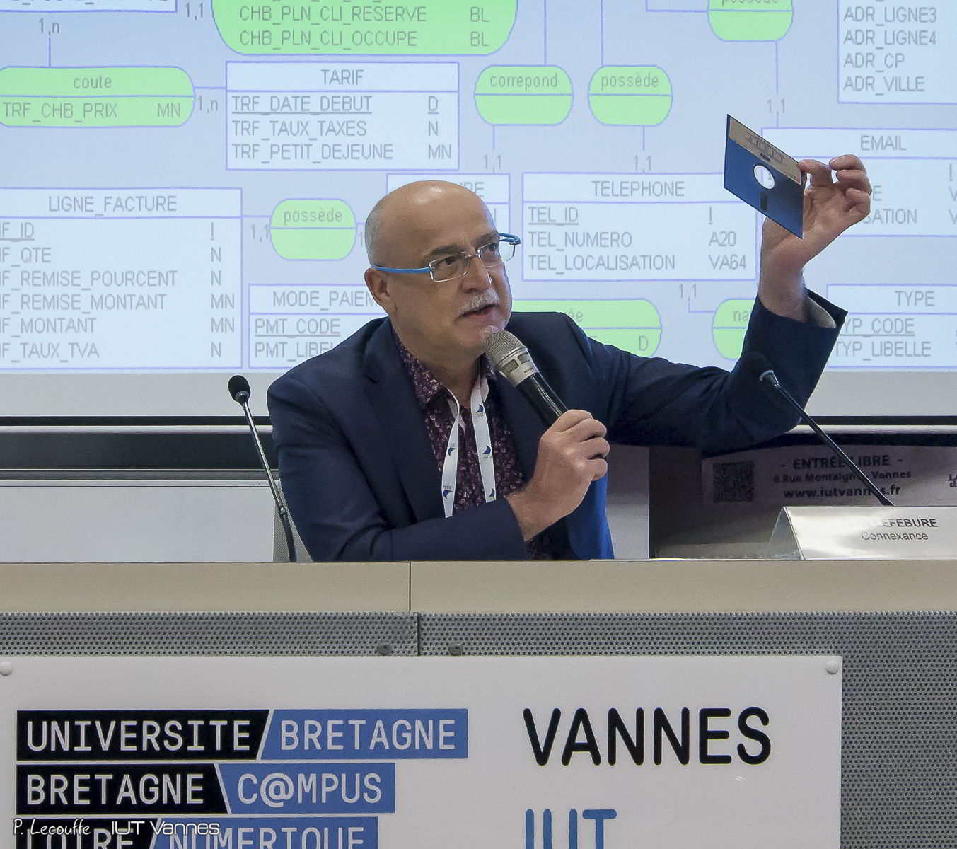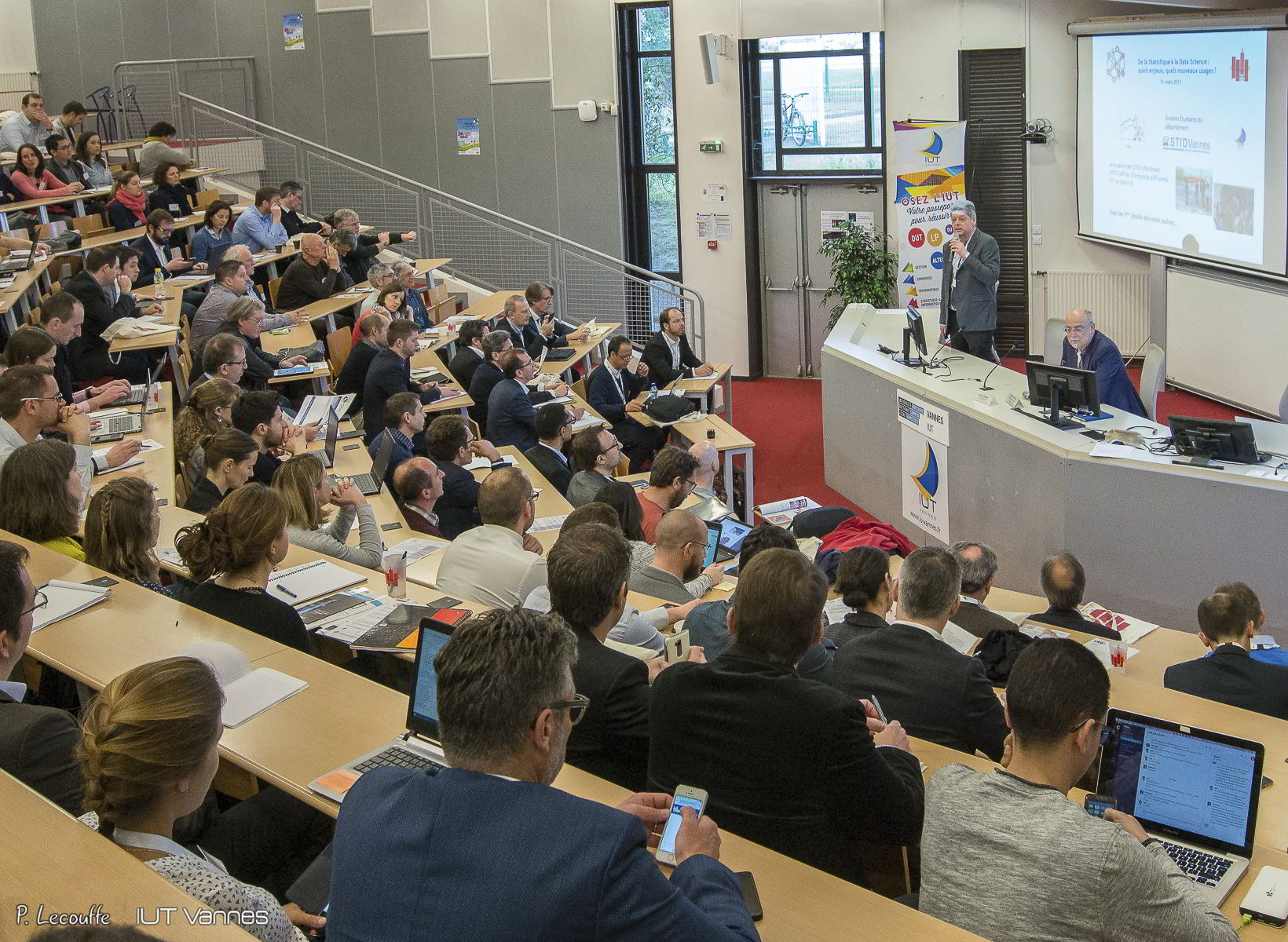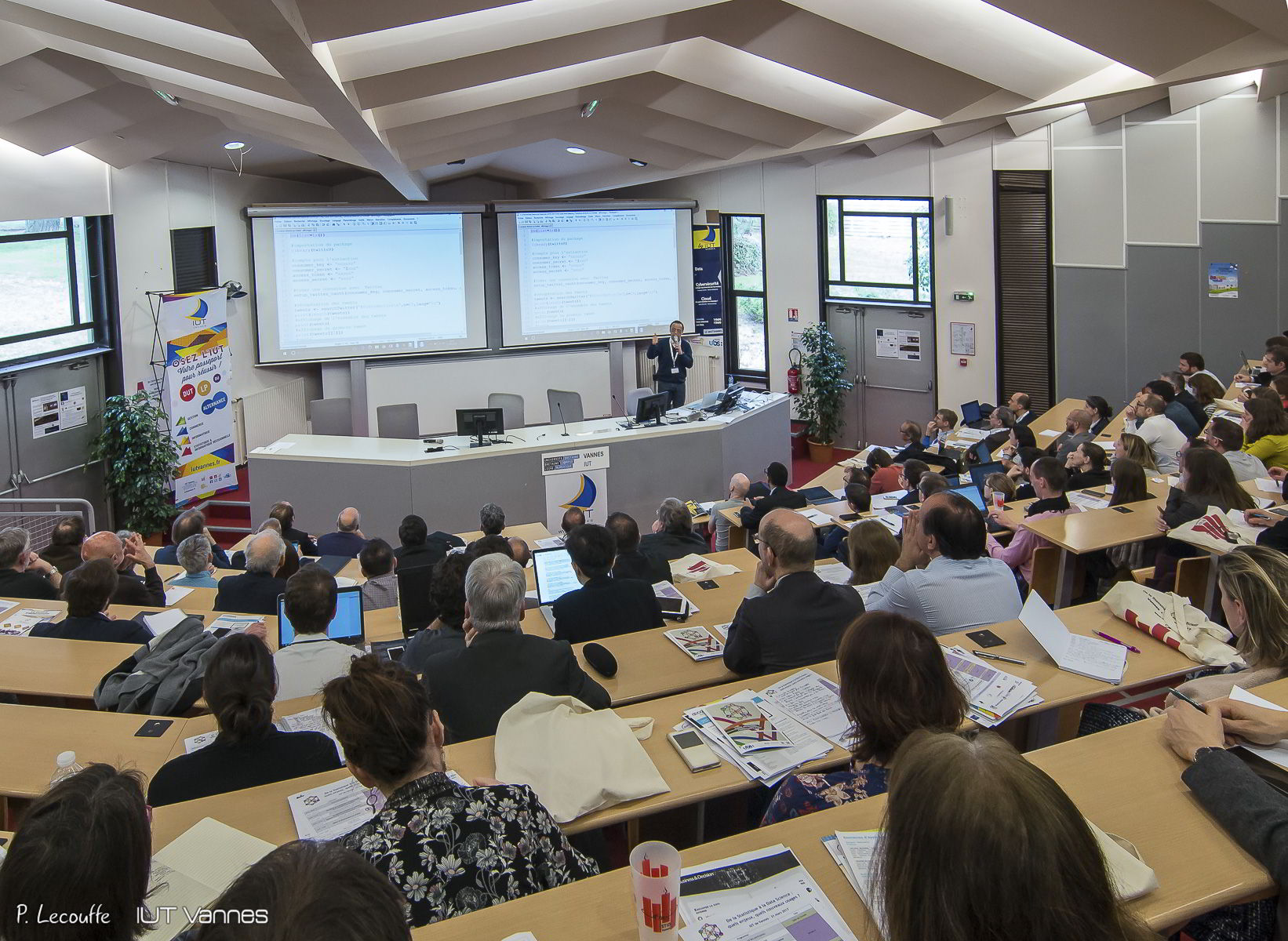 Les conférences commencent. Un discours d’accueil de Patrice Kermorvant directeur de l’IUT. Pas une seule seconde il n’a sorti le haut de sa tête du faisceau de lumière du vidéo-projecteur. Tant pis, J’ai mis les moins pires.