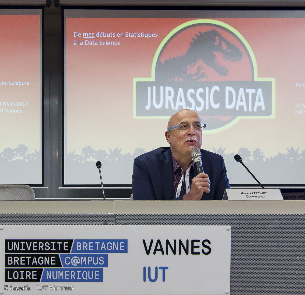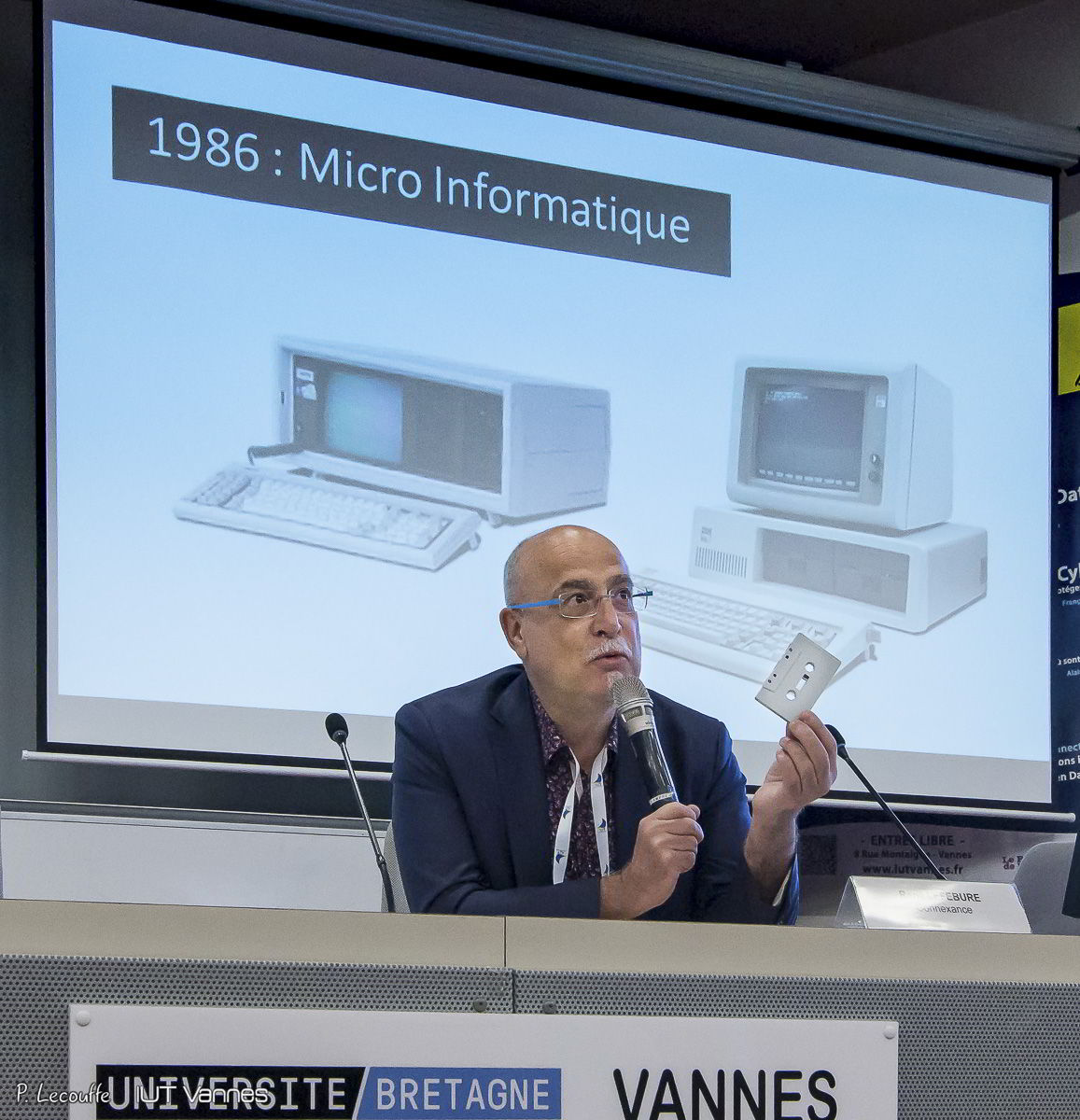 J’ai beaucoup aimé la conférence de René Lefebure qui a raconté l’évolution de l’informatique depuis le ZX81 au Cloud actuel en passant par les cartes perforées, les disquettes souples et cassettes… On doit avoir presque le même âge, cela m’a rappelé les blagues de potaches consistant à inverser deux cartes perforées du programme du voisin ! Le temps ou chaque étudiant disposait d’une ou deux minutes d’ordinateur par mois. Jurassic Data !
