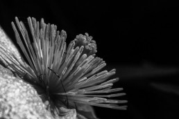 Alors qu’à la surface notre monde baigne dans la douce lumière du printemps, que le bleu de notre ciel est d’une pureté absolue, et sans quitter son jardin, Philippe nous plonge dans un monde obscur, empli de monstres marins, de coraux morts. Il nous emmène dans les profondeurs sous-marines au fond desquelles nous croisons calamars et anémones.